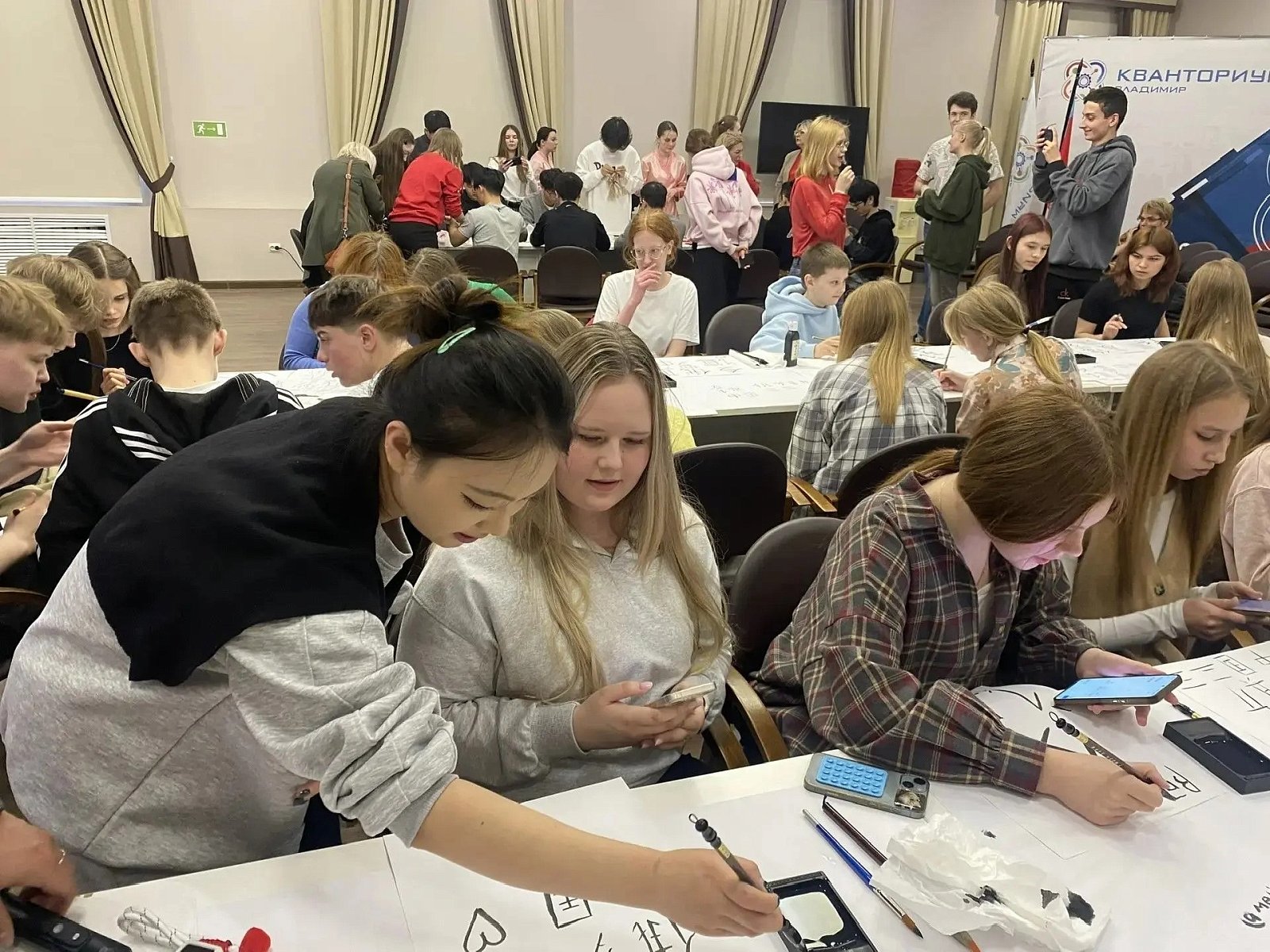 День посвятили народным промыслам и культурным традициям двух стран. Встреча началась с завораживающего театра теней, который объединил всех участников. Затем ребята погрузились в творчество: владимирские школьники осваивали искусство китайской каллиграфии, а китайские студенты с интересом мастерили славянский сувенир-оберег.